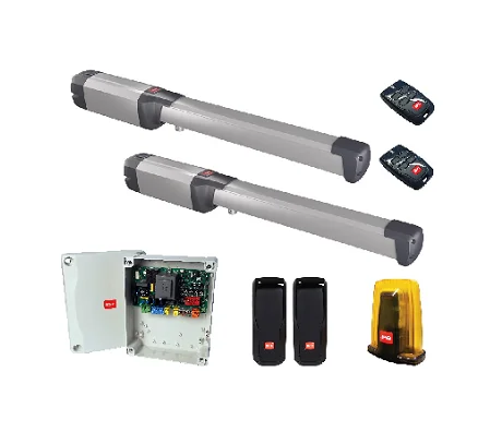 Acest kit este o soluție de forță, proiectată pentru porți batante de mari dimensiuni. Este capabil să gestioneze canate (aripi de poartă) cu o lungime de până la 5 metri și o greutate maximă de 500 kg per canat. Datorită pistoanelor lungi, este ideal pentru porți montate pe stâlpi groși, unde distanța de la balama la marginea interioară a stâlpului este considerabilă.