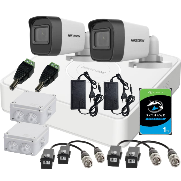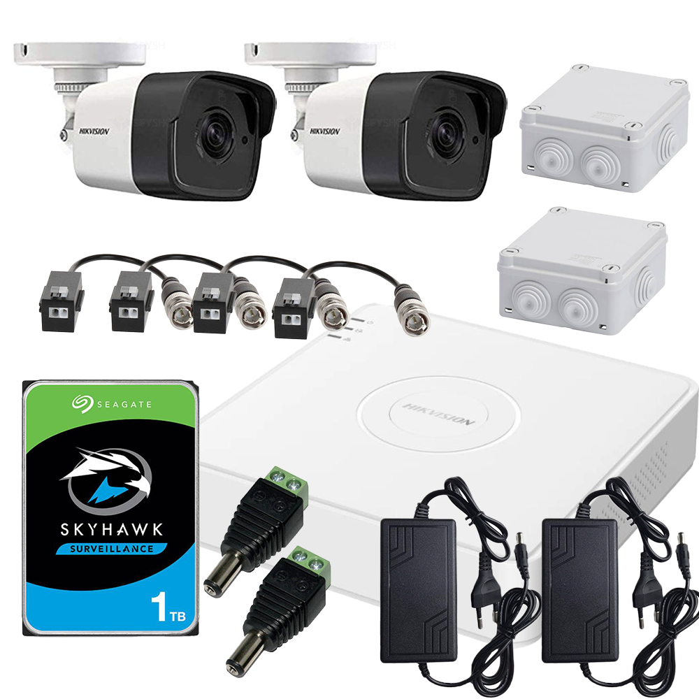 Kit 2 camere de exterior analog Hikvision 2MP complet