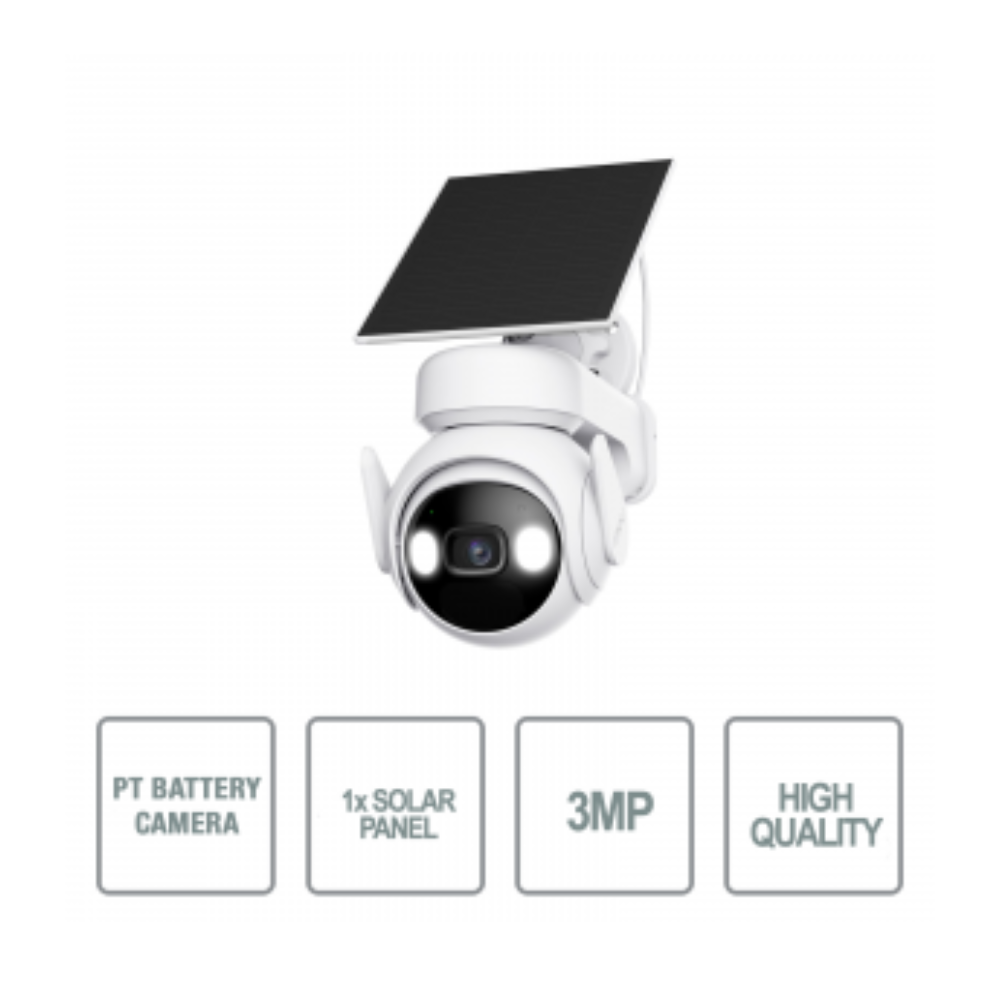Cameră dispune de un senzor de 3MP care captează imagini clare și detaliate chiar și în condiții de iluminare slabă. Unghiul ajustabil datorită funcționalității PT (Pan & Tilt) oferă o acoperire completă a zonei protejate. Alimentarea este asigurată ecologic prin panoul solar inclus (3W), iar conectivitatea Wi-Fi elimină necesitatea cablării complicate. Sistemul operează la temperaturi variate cu o eficiență optimă de la -20 °C până la +50 °C.