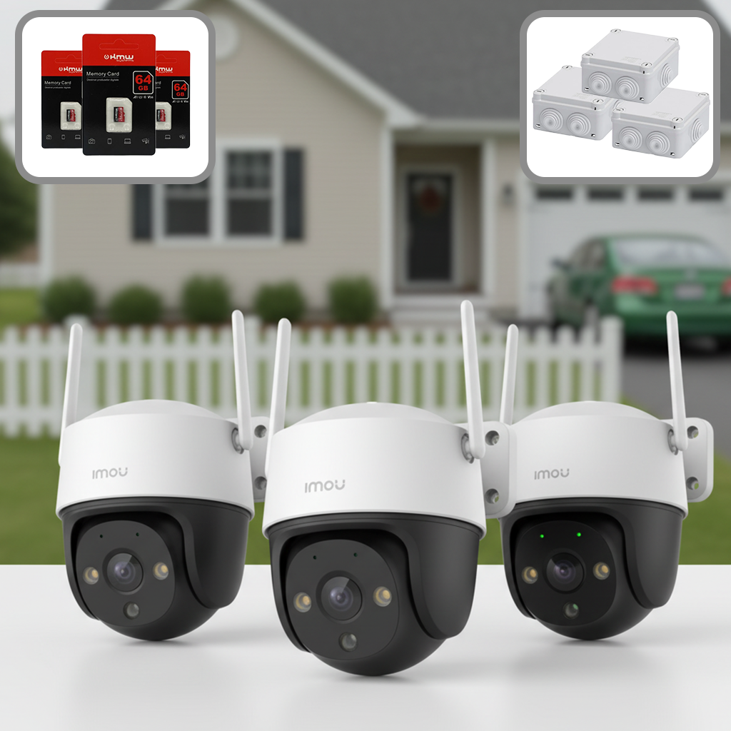 Kit Complet 3 Camere Supraveghere exterior Wi-Fi IMOU Cruiser SE+ 5MP – Dome IR 30m Audio și Card 64GB oferă siguranță inteligentă pentru locuințe, birouri sau spații comerciale. Cele 3 camere dome Wi-Fi surprind imagini clare, colorate și detaliate, iar instalarea se face rapid, fără cabluri suplimentare. Prin aplicația IMOU Life, utilizatorii pot monitoriza live, salva înregistrări și comunica direct cu persoanele din fața camerei.