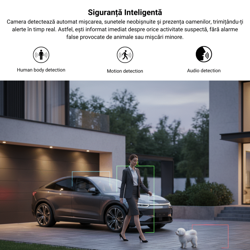 • Primi notificări instant la detecție mișcare