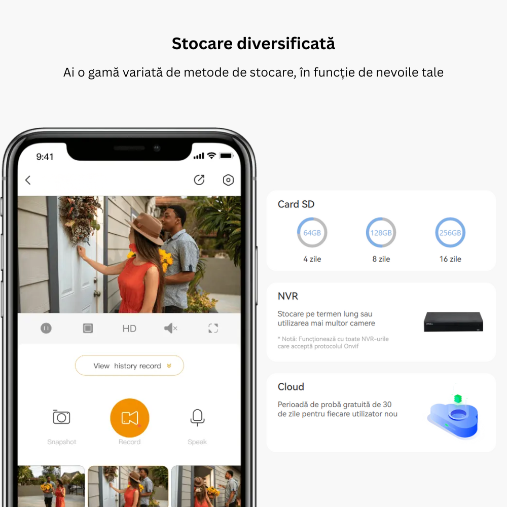 • Card 64GB / cameră – Înregistrări locale sigure