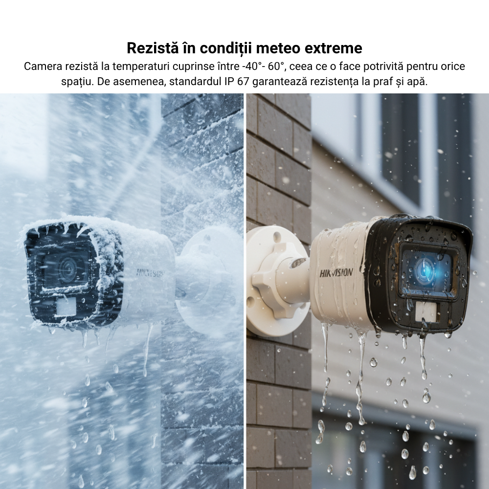 Toate camerele din kit sunt dotate cu iluminatoare infraroșu (IR) de ultimă generație. Camerele de exterior pot vedea în întuneric total pe distanțe de până la 25 de metri, în timp ce camera de interior asigură o iluminare uniformă, fără a "orbi" subiecții aflați aproape de obiectiv. Rezoluția de 5MP oferă o densitate mare de pixeli, ceea ce înseamnă că detaliile rămân vizibile chiar și în condiții de iluminare slabă.